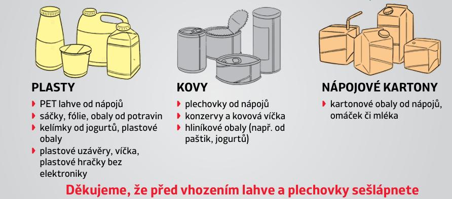 Pozor změna!! od 1.1.2026 je zaveden multikomoditní sběr plastů, nápojových kartonů a kovových obalů. To znamená, že do označených pytlů, které jsou zdarma k dispozici na OÚ, je možno dávat tyto odpady společně! Svoz zůstává stejný – každou první středu v měsíci.